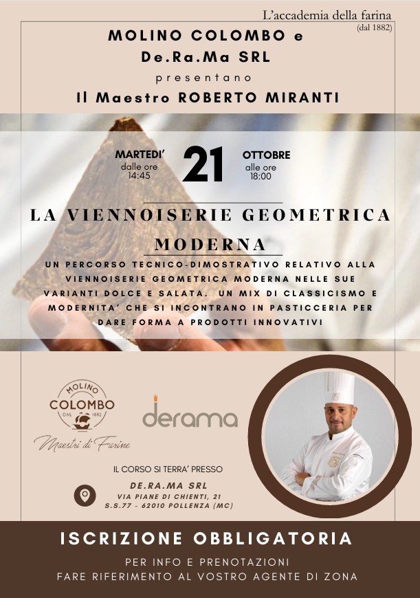 Descrizione evento: Un percorso tecnico-dimostrativo relativo alla viennoiserie geometrica moderna nelle sue varianti dolce e salata. Un mix di classicismo e modernità che si incontrano in pasticceria per dare forma a prodotti innovativi.