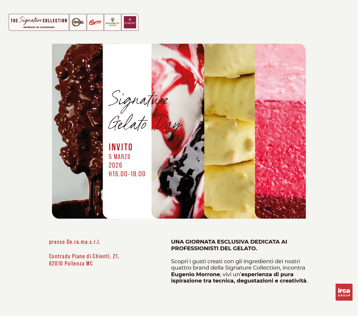 Descrizione evento: Durante l'evento il maestro Eugenio Morrone andrà a spiegare e a realizzare ricette di sorbetti e gelati. Seguirà una degustazione libera del gelato realizzato e dei prodotti in purezza utilizzati in aree dedicate. A fine giornata è previsto un aperitivo con cocktail e puree Ravifruit.